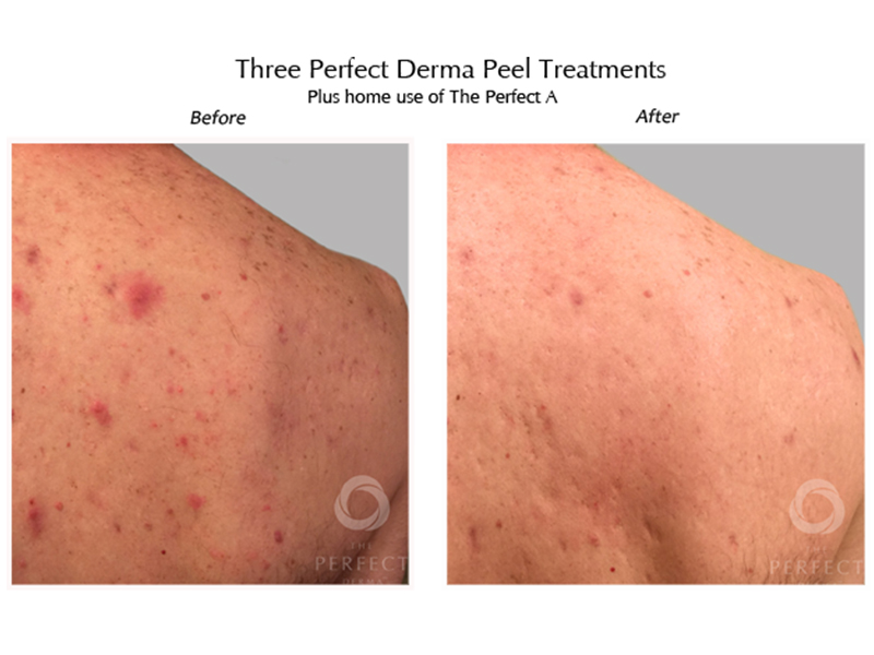 - The Perfect Derma Peel is highly versatile, addressing various concerns such as acne scars, fine lines, age spots, melasma, sun damage, and dullness. Typically, clients notice visible improvement after just one session, though a series of treatments may be recommended for deeper concerns.